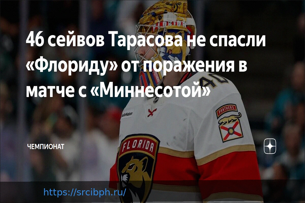 В рамках регулярного чемпионата Национальной хоккейной лиги (НХЛ) клуб «Флорида Пантерз» потерпел поражение от «Миннесоты Уайлд» со счетом 2:3. Несмотря на этот результат, вратарь «Флориды» Сергей Тарасов стал одним из главных героев матча, отразив 46 бросков по своим воротам и продемонстрировав впечатляющую игру.